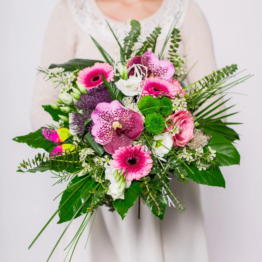 Buket veselih boja sa sezonskim miješanim cvijećem.